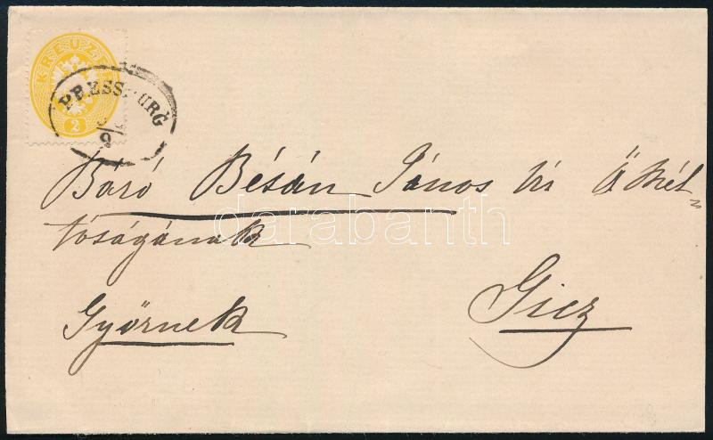 ~1863 2kr nyomtatványon "PRESSBURG" (100.000) (ANK EUR 340.-... https://www.darabanth.com/de/514-Auktion-Philatelie-Postkarten-Numismatik-Kunstwerke-Bucher-Schreibwaren-Schmuck/515.0/Philatelie-und-Postgeschichte-Ungarn/Briefmarkenausgabe-1863~23/7E1863-2kr-nyomtatvanyon-PRESSBURG-100000-ANK-EUR-340-~II3483272