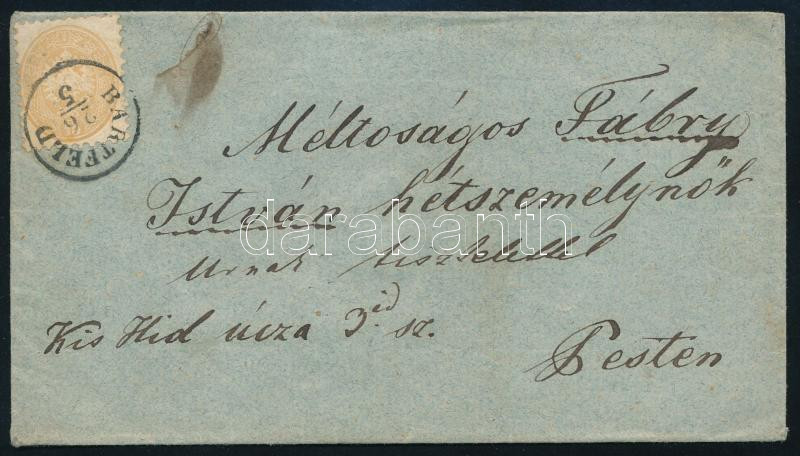 1865 15kr levélen / on cover "BARTFELD" - Pest https://www.darabanth.com/de/514-Auktion-Philatelie-Postkarten-Numismatik-Kunstwerke-Bucher-Schreibwaren-Schmuck/515.0/Philatelie-und-Postgeschichte-Ungarn/Briefmarkenausgabe-1864~25/1865-15kr-levelen-on-cover-BARTFELD-Pest~II3420504