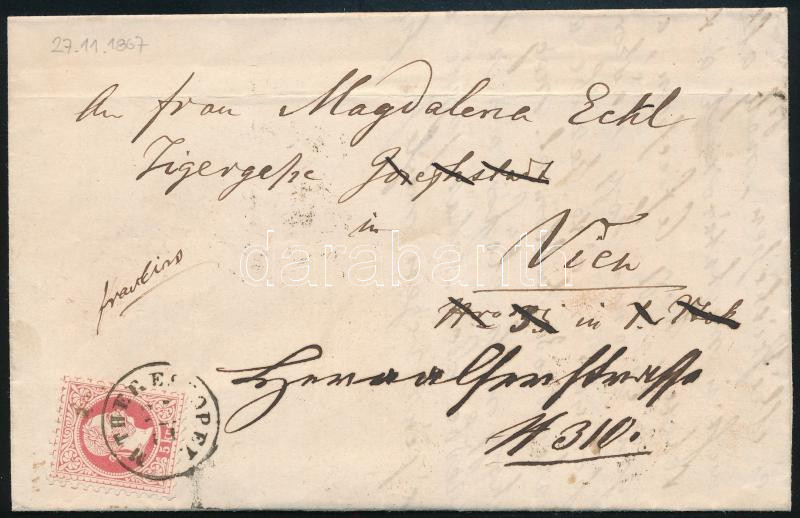 Beschreibung: 1867 5kr levélen "M. THERESIOPEL" - Wien