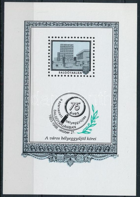 Beschreibung: 1998 75 éves a szervezett bélyeggyűjtés Salgótarjánban emlékív