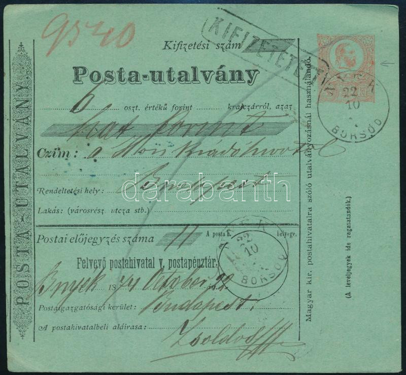 Beschreibung: 1874 5kr díjjegyes postautalvány "NYÉK BORSOD" - Budapest