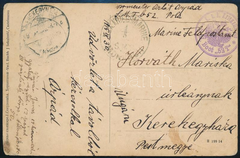 1915 Tábori posta képeslap / Field postcard "S.M. Boot 52 T" + "S.M.S. MONARCH"