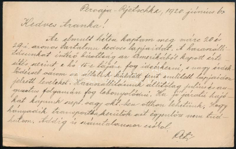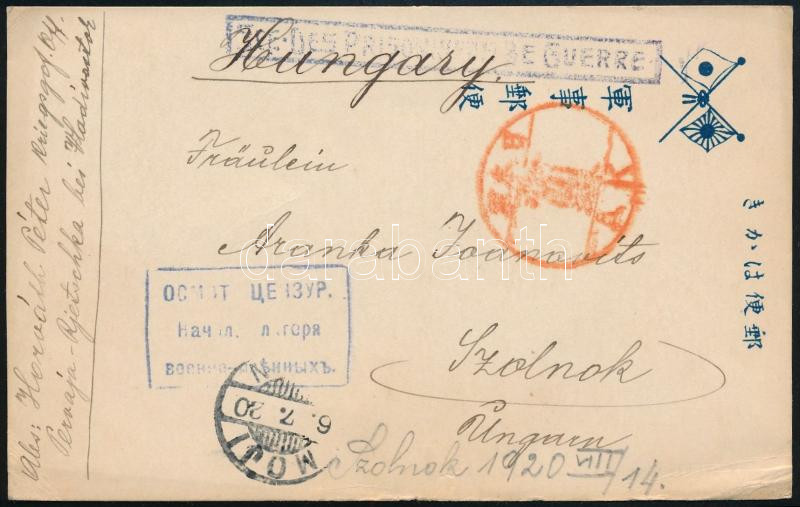 1920 Hadifogoly küldemény (japán levelezőlap) a Vladivostok melletti Pervaja Rjecska hadifogoly táborból / POW postcard (Japanese postcard) from the prisoner of war camp near Vladivostok