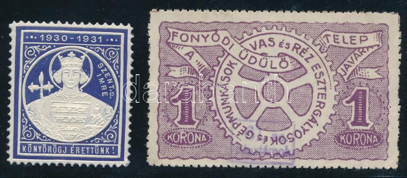 Beschreibung: 1930-1931 Szent Imre levélzáró + Fonyódi üdülőtelep javára 1K adománybélyeg