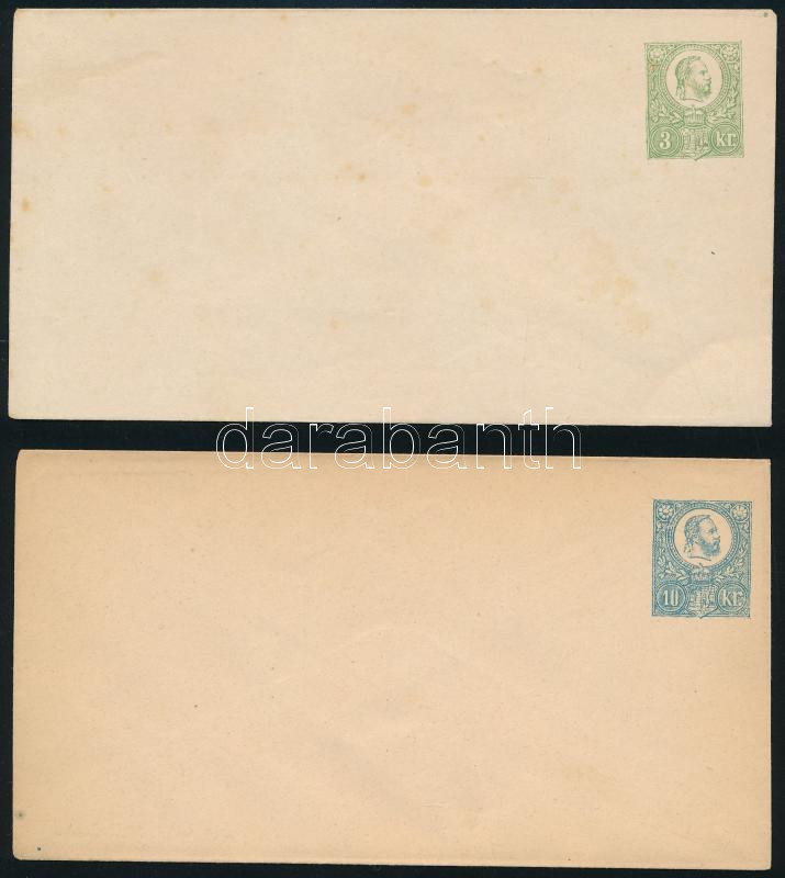 Beschreibung: 1871 3kr és 10kr használatlan díjjegyes boríték