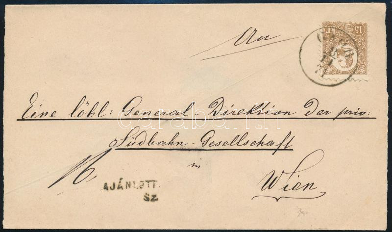 Beschreibung: 1871 Kőnyomat 15kr képbe fogazott friss bélyeg ajánlott levélen "GYŐR" - Wien