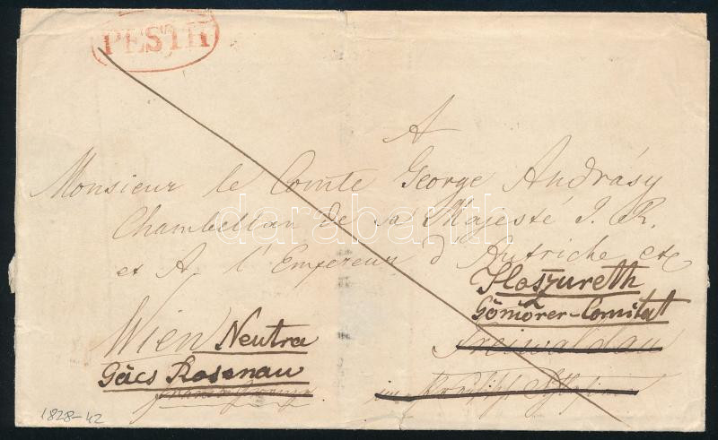 1828-1842 Félportós levél, piros "PEST" (Rompes 200p) - Frei... https://www.darabanth.com/de/514-Auktion-Philatelie-Postkarten-Numismatik-Kunstwerke-Bucher-Schreibwaren-Schmuck/515.0/Philatelie-und-Postgeschichte-Ungarn/Vorphilatelie~16/1828-1842-Felportos-level-piros-PEST-Rompes-200p-Freiwaldau-majd-utankuldve-Hosszure~II3476585