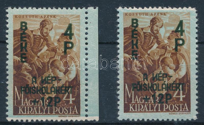 1945 Béke (I.) 2 db 4P/4f mindkettő fordított N betű tévnyomattal, hiányos alapnyomattal (12.000)