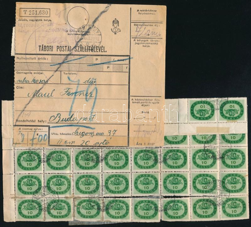 1946 (17. díjszabás) Szállítólevél 66 db Milliós bélyeggel "NÉMETBOLY" / Parcel card with 66 stamps