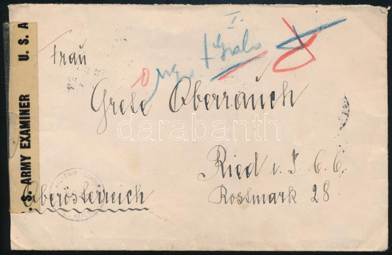 1946 (20. díjszabás) Cenzúrázott levél 16 db bélyeggel Ausztriába / Censored cover with 16 stamps to Austria