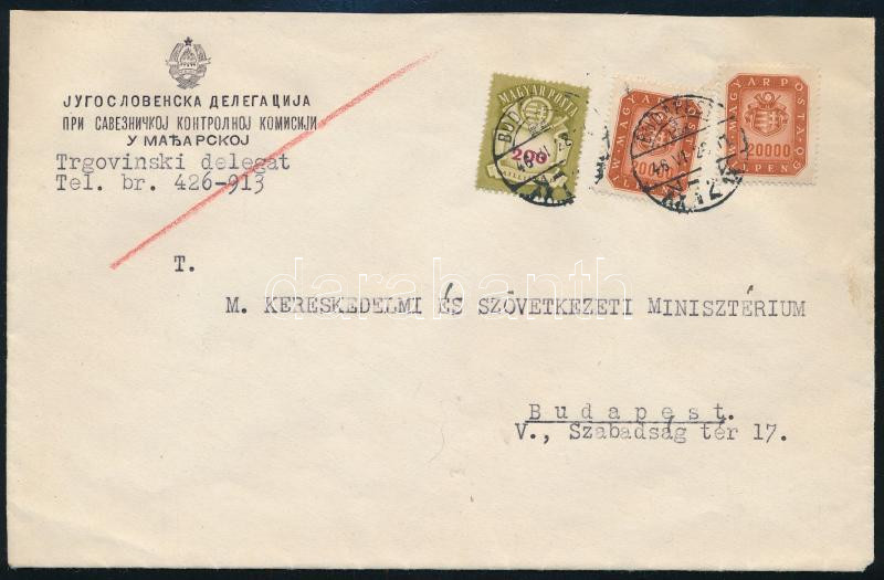 Beschreibung: 1946 (21. díjszabás) Budapest helyi levél 3 bélyeges bérmentesítéssel. Ritka, hogy ilyen kevés bélyeget használtak! / Local cover with 3 stamps. RR!