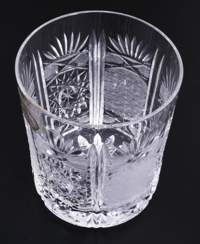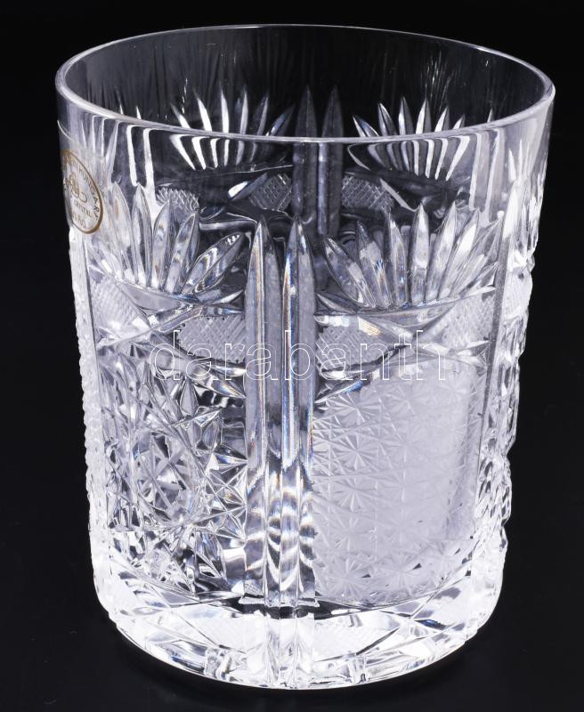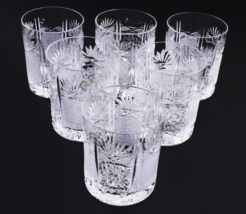 Beschreibung: Ajka kristály whiskey pohár szett, gazdag csiszolással, jelzett, hibátlan, 6 darab, m: 9,5 cm