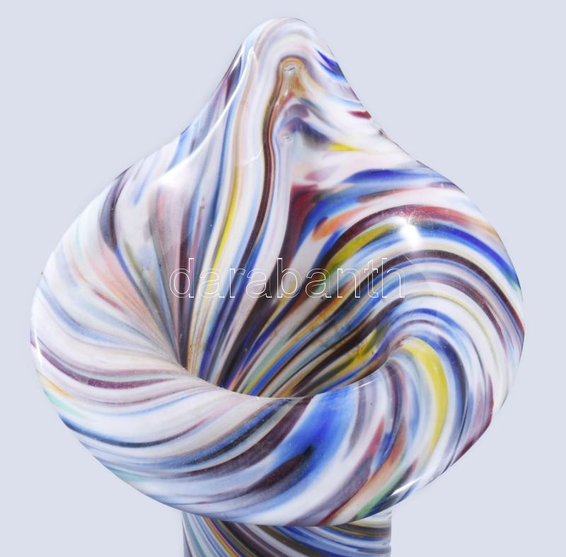 Anyagában színezett multicolor váza, hibátlan, m: 26 cm https://www.darabanth.com/de/514-Auktion-Philatelie-Postkarten-Numismatik-Kunstwerke-Bucher-Schreibwaren-Schmuck/515.0/Porzellan-Keramik-Glass/Glaser~573/Anyagaban-szinezett-multicolor-vaza-hibatlan-m-26-cm~II3481320
