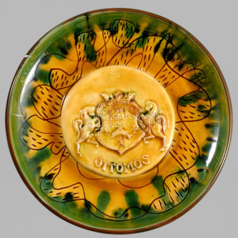Korom Kati (1953- ): Öttömös címere. Mázas kerámia, jelzett, 20 cm https://www.darabanth.com/de/514-Auktion-Philatelie-Postkarten-Numismatik-Kunstwerke-Bucher-Schreibwaren-Schmuck/515.0/Porzellan-Keramik-Glass/Keramiken~571/Korom-Kati-1953-Ottomos-cimere-Mazas-keramia-jelzett-20-cm--3Cbr-3E~II3439366
