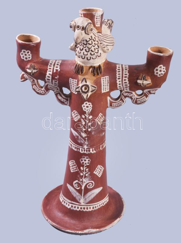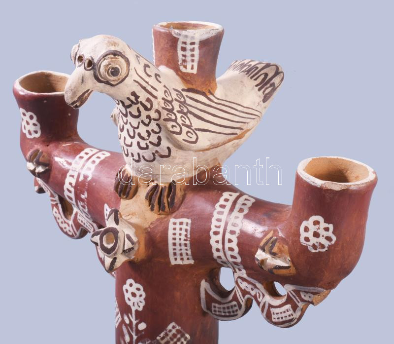 Perui autentikus madáralakkal díszített háromágú gyertyatartó, m: 28,5... https://www.darabanth.com/de/514-Auktion-Philatelie-Postkarten-Numismatik-Kunstwerke-Bucher-Schreibwaren-Schmuck/515.0/Porzellan-Keramik-Glass/Keramiken~571/Perui-autentikus-madaralakkal-diszitett-haromagu-gyertyatarto-m-28-5-cm~II3479769