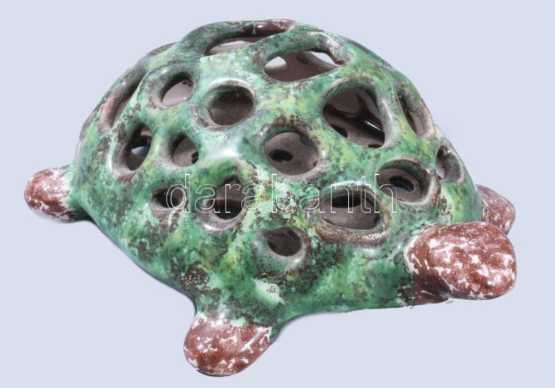 Beschreibung: Teknős alakú retro iparművész ikebana, mázas kerámia, jelzés nélkül, hibátlan, 15x11 cm