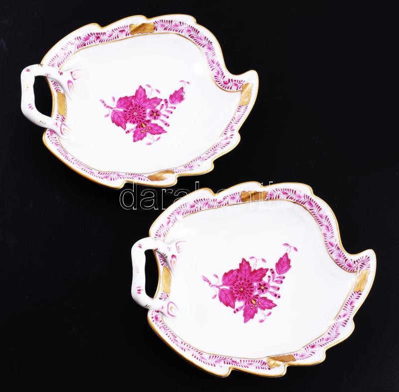 Beschreibung: 2 db Herendi Apponyi mintás levél tálka, Kézzel festett, jelzett, hibátlan 15x12 cm