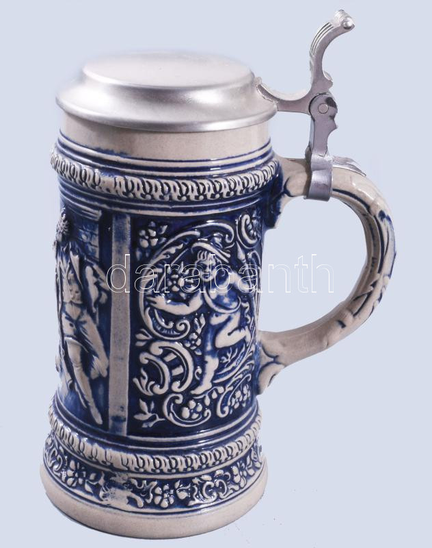 Beschreibung: Gerzit vadászjelenetes söröskorsó, jelzett, hibátlan, m: 20 cm