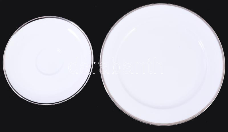 Beschreibung: Heinrich platinacsíkozott 6 személyes reggeliző szett, csészék alátéttel és desszertes tányérok, jelzett, hibátlan, d: 19,5 cm