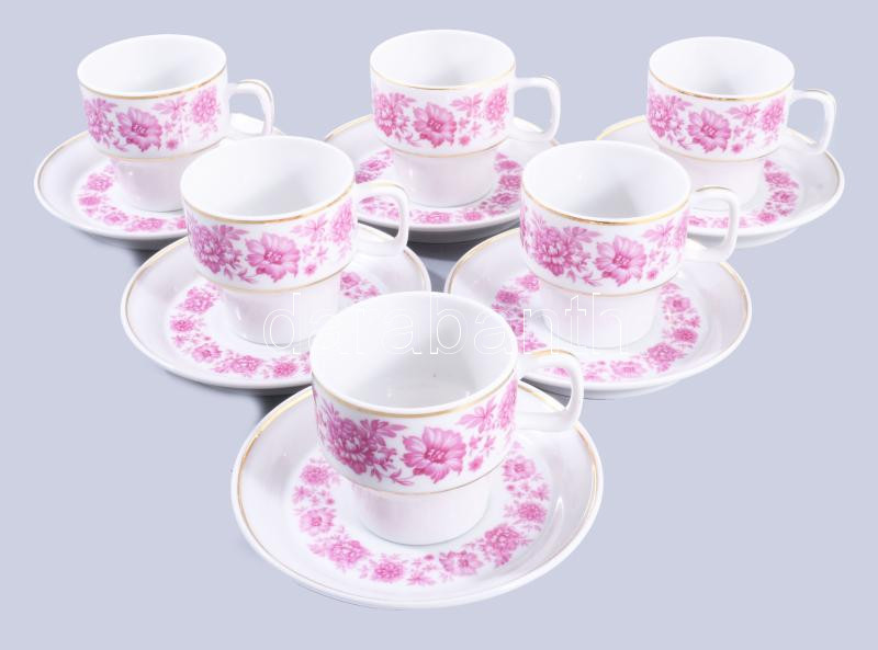Hollóházi 6 darab csésze alátéttel, hibátlan. https://www.darabanth.com/de/514-Auktion-Philatelie-Postkarten-Numismatik-Kunstwerke-Bucher-Schreibwaren-Schmuck/515.0/Porzellan-Keramik-Glass/Porzellan~572/Hollohazi-6-darab-csesze-alatettel-hibatlan~II3481364