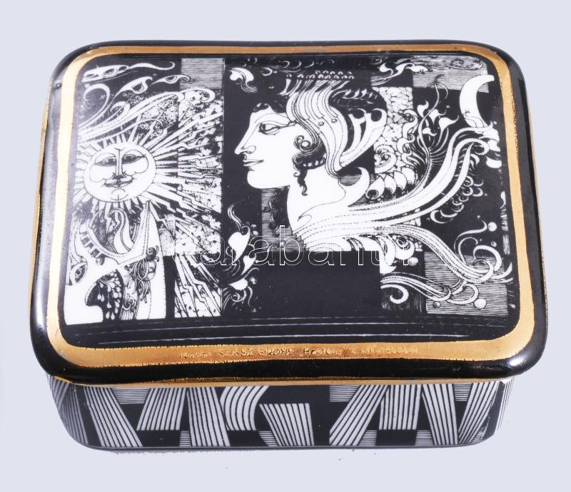 Hollóházi Szász Endre által tervezett mintával díszített bonbonier. Ma... https://www.darabanth.com/de/514-Auktion-Philatelie-Postkarten-Numismatik-Kunstwerke-Bucher-Schreibwaren-Schmuck/515.0/Porzellan-Keramik-Glass/Porzellan~572/Hollohazi-Szasz-Endre-altal-tervezett-mintaval-diszitett-bonbonier-Matricas-jelzett-9x7-5~II3474376