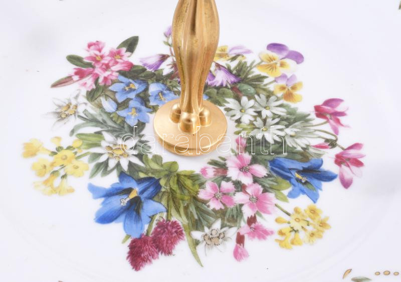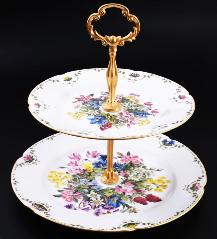 Beschreibung: Német emeletes kínáló, virágmintával, jelzett, d: 25 cm, m: 24 cm