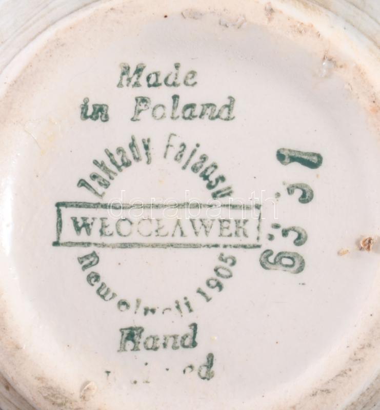 Wlocławek váza, jelzett, kopással, m: 18,5 cm https://www.darabanth.com/de/514-Auktion-Philatelie-Postkarten-Numismatik-Kunstwerke-Bucher-Schreibwaren-Schmuck/515.0/Porzellan-Keramik-Glass/Porzellan~572/WlocC582awek-vaza-jelzett-kopassal-m-18-5-cm3Cbr-3E~II3482728