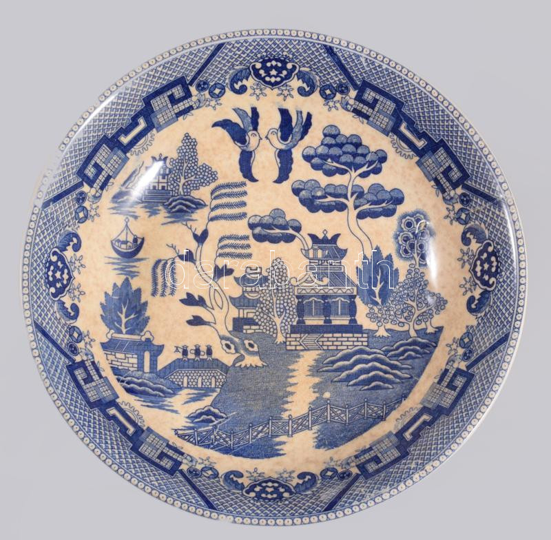 cca 1920, Japán bowl "blue willow" mintával. Jelzett, mázszí... https://www.darabanth.com/de/514-Auktion-Philatelie-Postkarten-Numismatik-Kunstwerke-Bucher-Schreibwaren-Schmuck/515.0/Porzellan-Keramik-Glass/Porzellan~572/cca-1920-Japan-bowl-blue-willow-mintaval-Jelzett-mazszinezodessel-d-26-cm~II3455999