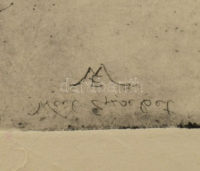 Beschreibung: Aszódi Weil Erzsébet (1901-1976): Pásztorfiú báránnyal (cím nélkül). Rézkarc, papír. Jelzett a karcon. Lapszéli apró lyukakkal. 25x37 cm