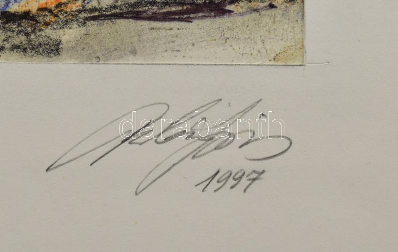 Beschreibung: Balázs György (1927-2015): Csendélet edényekkel és üvegekkel, 1997. Vegyes technika, papír, jelzett, paszpartuban. 30x18,5 cm