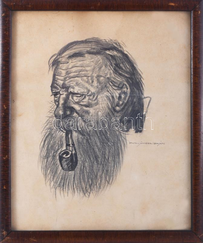 Kurländer István (-), működött a XX. sz. első felében: Tiroli tanulmányfej, 1931. Ceruza, papír, jelzett, hátoldalán Kurländer István autográf feliratával, üvegezett fakeretben, 26,5×22 cm