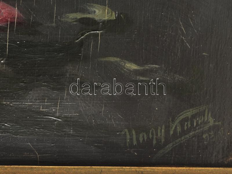 Nagy Károly (működött a XX. sz első felében, feltehetően aradi festő): Csendélet, 1930. Olaj, fa. Jelezve jobbra lent. Dekoratív fakeretben. 63x82 cm /