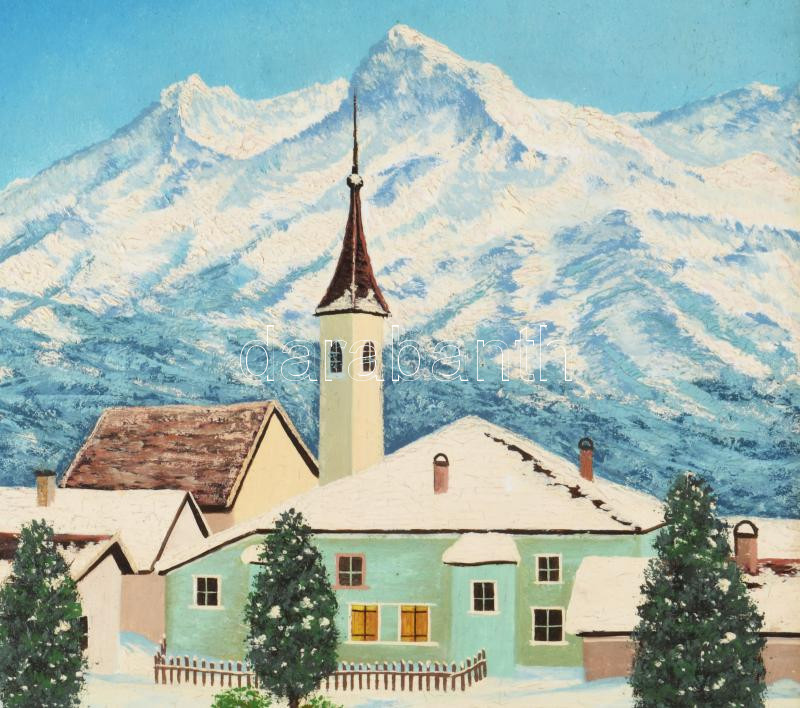 Beschreibung: Brieska jelzéssel: Téli táj. Olaj, farost, fakeretben, 30×40 cm