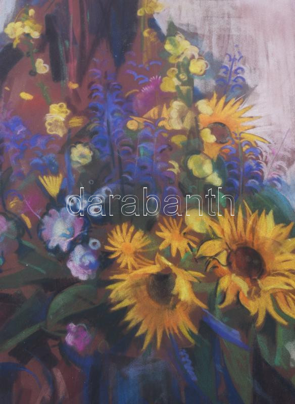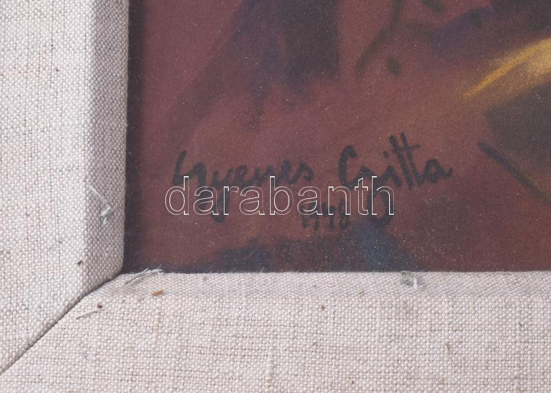 Beschreibung: Gyenes Gitta jelzéssel: Csendélet. Pasztell, papír. Dekoratív, üvegezett, kissé sérült fakeretben. 59x49 cm