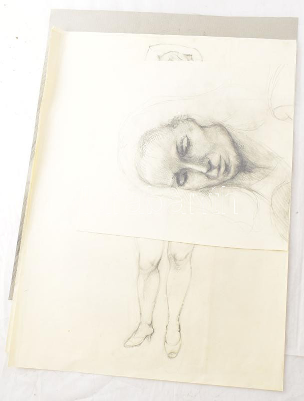 Beschreibung: Jelzés nélkül: 4 db tanulmányrajz, közte női akt. Ceruza, szén, papír. 37x35 és 62x46,5 cm