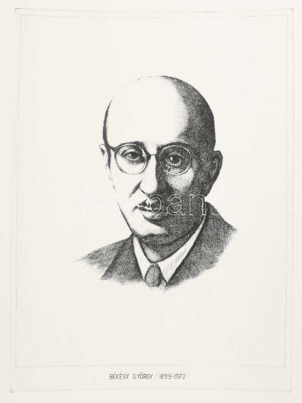 Jelzés nélkül: Békésy György portréja. Rézkarc, papír, jelzés nélkül, 39,5x29 cm