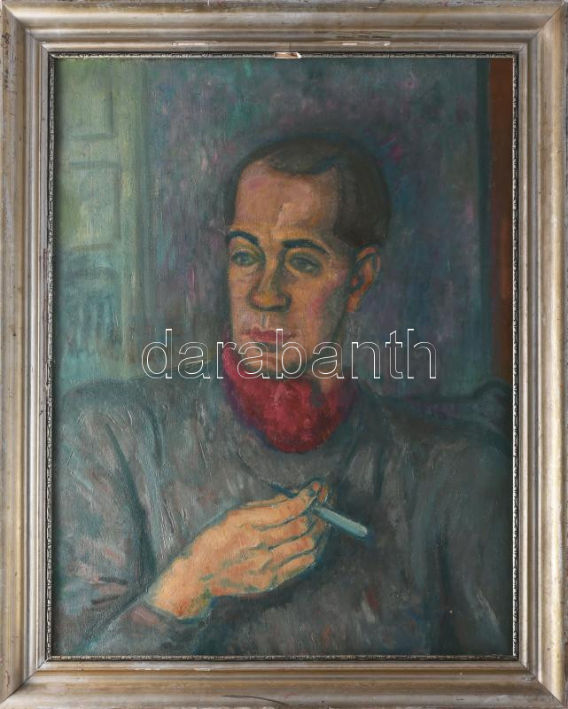 Jelzés nélkül, feltehetően 1920-40 körül: Festő portréja (Batthyány Gyula?). Olaj, vászon. Hátoldalán nehezen olvasható felirattal (? Ember Margit, Gr. Batthyány Gyula). Dekoratív, kissé sérült fakeretben. 71,5x56 cm