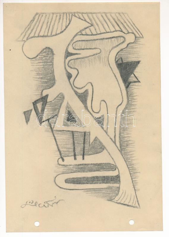 Olvashatatlan jelzéssel: Absztrakt kompozíció. Ceruza, papír. Lap alja lyukasztott. 26,5x18 cm