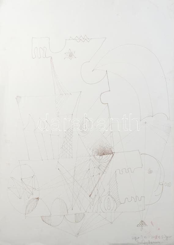 Olvashatatlan jelzéssel: Hommage a Picasso (olvashatatlan címmel). Tus, toll, papír, 70x50 cm