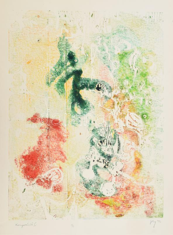 Beschreibung: Olvashatatlan jelzéssel: Kompozíció I. Monotípia, papír, 45,5x35 cm