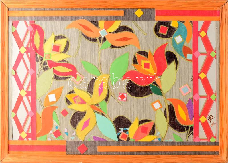 Olvashatatlan jelzéssel: Nyár. Kollázs, vegyes technika, papír. Fakeretben. 45x65 cm