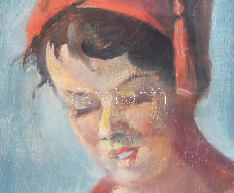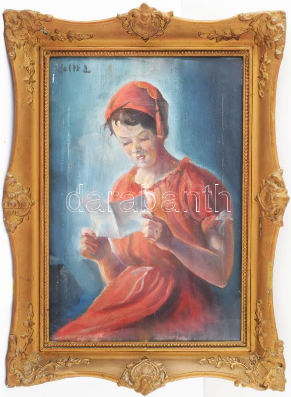 Olvashatatlan jelzéssel: Olvasó hölgy portréja. Olaj, vászon. 53x46,5 cm. Dekoratív, üvegezett fakeretben.