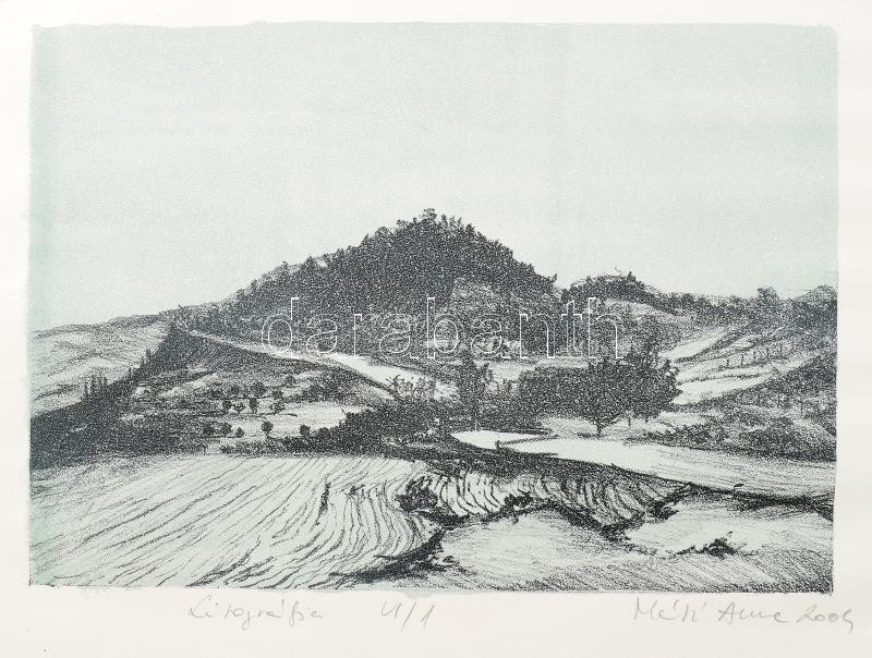 Beschreibung: Olvashatatlan jelzéssel: Táj. Litográfia, papír. VI/1 számozással. 21×30 cm