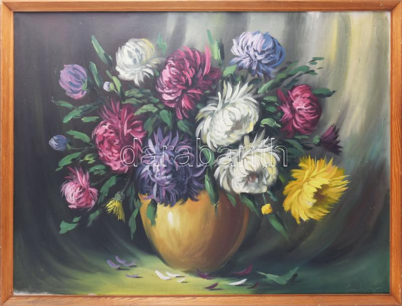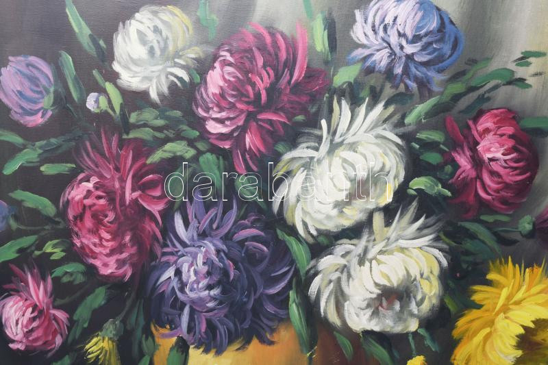 Beschreibung: Olvashatatlan jelzéssel: Virágok. Olaj, vászon. Fakeretben, 60x80 cm