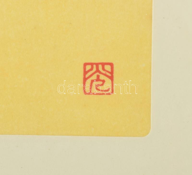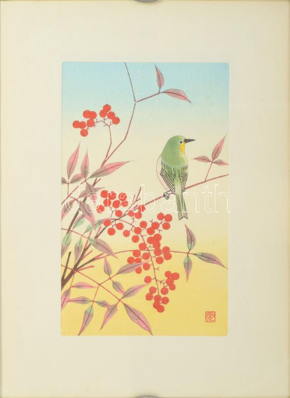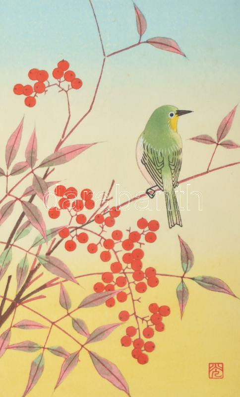 Olvashatatlan jelzéssel, feltehetően japán művész: Madárka. Nyomat, papír. Üvegezett klipsz keretben, 18×11 cm