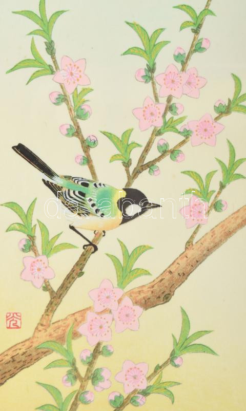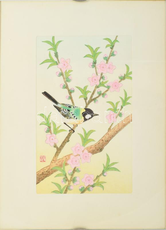Olvashatatlan jelzéssel, feltehetően japán művész: Madárka. Vegyes technika, papír. Üvegezett klipsz keretben, 18×11 cm