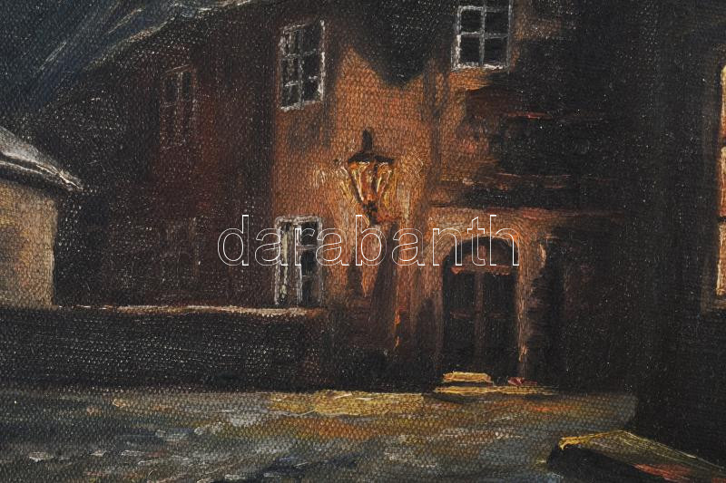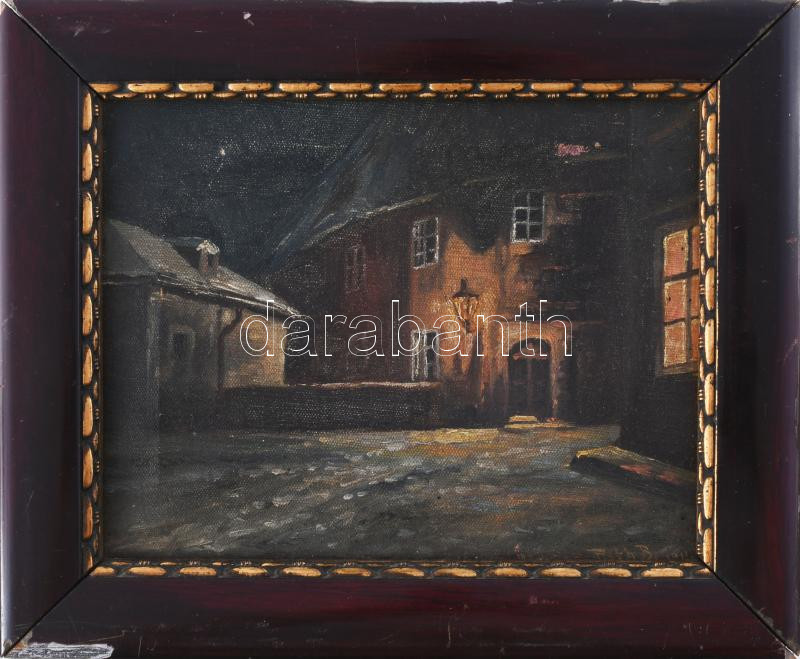 Beschreibung: Roth B jelzéssel: Esti utca, 1914. Olaj, vászon. Dekoratív fakeretben. 16,5×20 cm