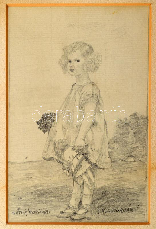Sátor Boriska jelzéssel, XX. sz. eleje: A kis durcás. Ceruza, papír, f... https://www.darabanth.com/de/514-Gemalde-Plakat-ex-libris-Auktion/516.0/Gemalde-und-Grafiken/Gemalde-und-Graphic-quot-signiertquot-quot-ohne-Signquot-~5/Sator-Boriska-jelzessel-XX-sz-eleje-A-kis-durcas-Ceruza-papir-fakeretben-21x13-5-cm~II3224281