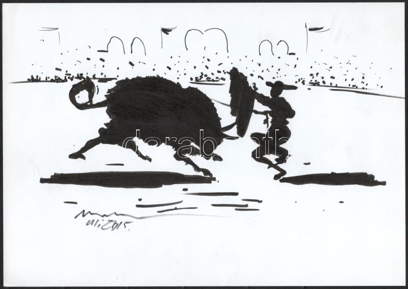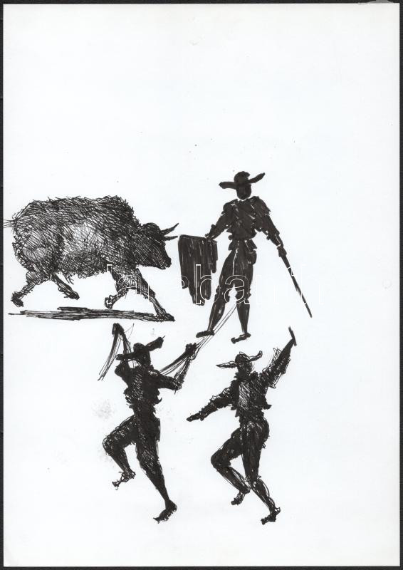 Uli jelzéssel, 2 db mű: Bikaviadal. Tus, papír. 21×29,5 cm https://www.darabanth.com/de/514-Gemalde-Plakat-ex-libris-Auktion/516.0/Gemalde-und-Grafiken/Gemalde-und-Graphic-quot-signiertquot-quot-ohne-Signquot-~5/Uli-jelzessel-2-db-mu-Bikaviadal-Tus-papir-21C39729-5-cm~II3459697