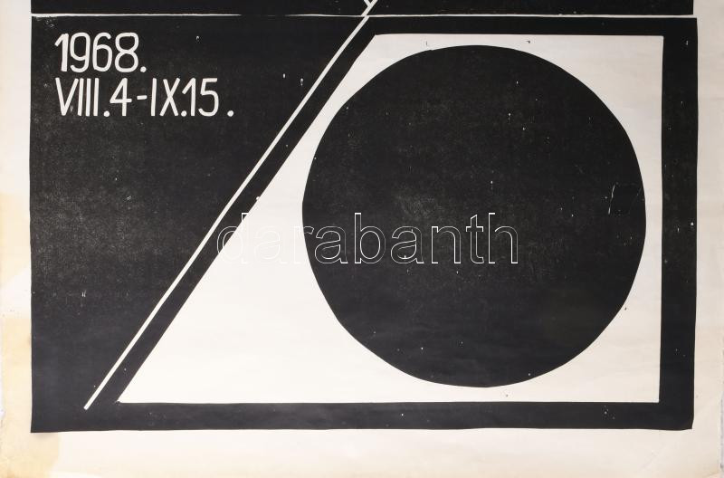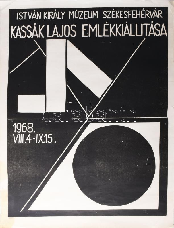 1968 Kassák Lajos emlékkiállítás, SZékesfehérvár, kiállítási plakát. Linómetszet, papír. Jelzés nélkül (Fajó János?). Apró lapszéli szakadásokkal. Kissé foltos. 73x55 cm
